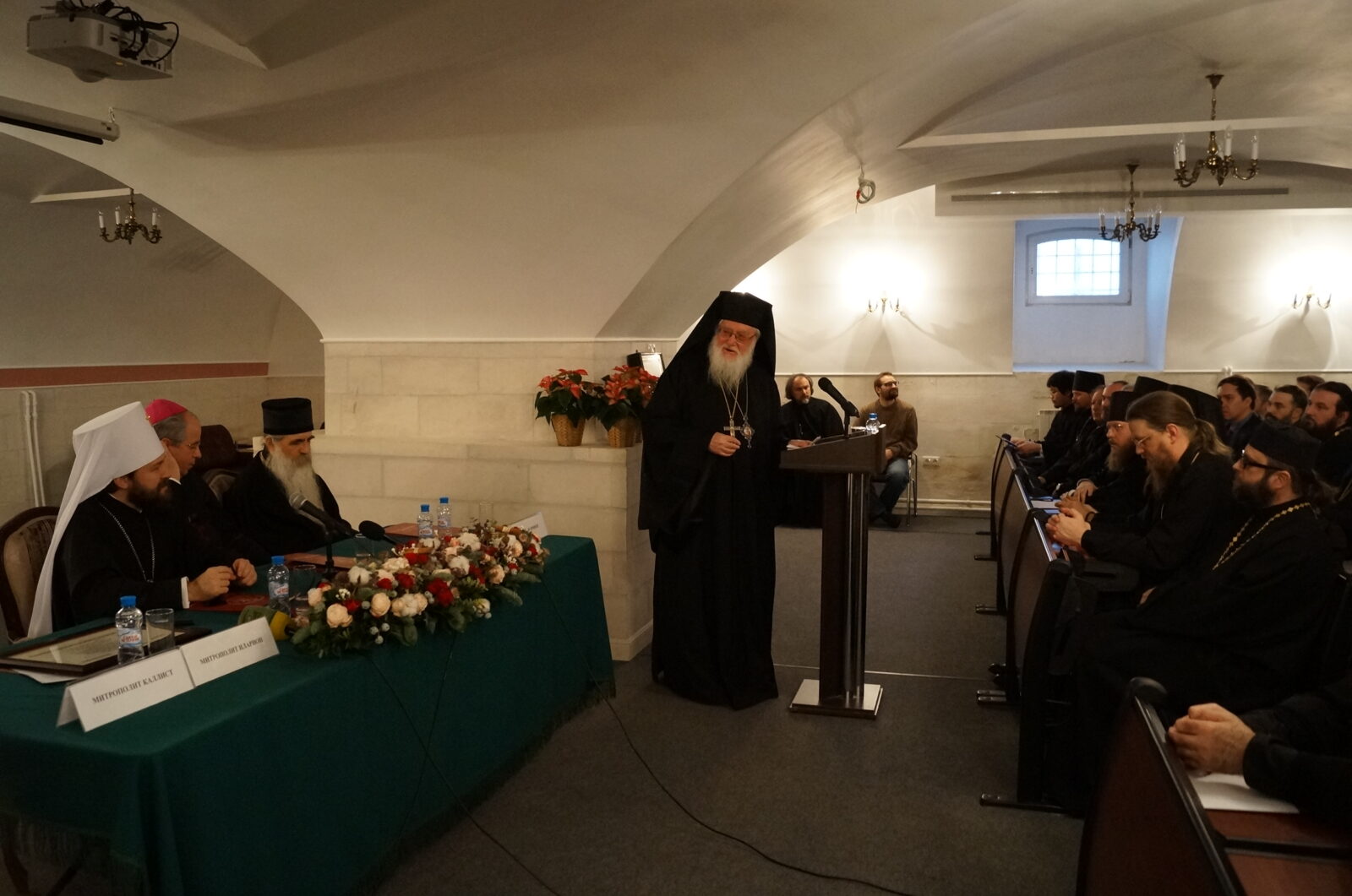 Собравшихся приветствовал ректор Общецерковной аспирантуры и докторантуры, председатель ОВЦС митрополит Волоколамский Иларион. В своем слове митр. Иларион отметил, что митр. Каллист воспитал множество последователей, в том числе самого митр. Илариона: Среди учеников Владыки − видные иерархи Поместных Православных Церквей, крупные богословы, работающие в сфере патристики и церковной истории, представители иных христианских конфессий.
