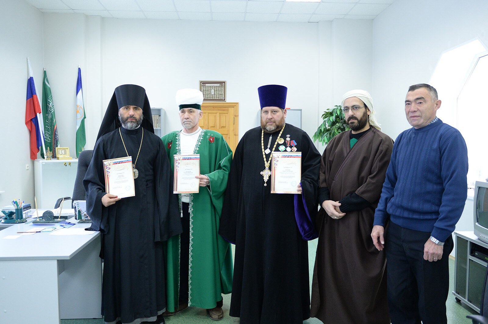 Еще один участник православно-магометанского совещания – журналист Салаватской городской газеты «Выбор» член Всероссийского есенинского общества Забир Исламов вручил епископу, протоиерею и муфтию дипломы благодарности «За многократную помощь Всероссийскому есенинскому обществу».