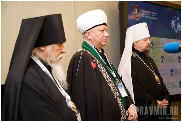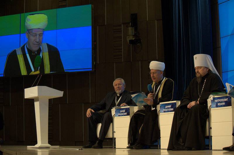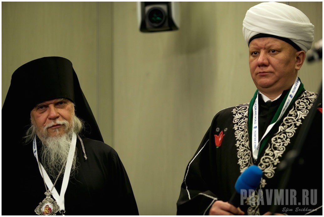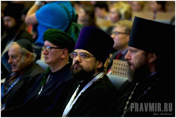 В пленарной сессии на тему «Война и мир. Вклад верующих в процессы умиротворения и преодоления последствий гуманитарных катастроф» приняли участие митрополит Белгородский и Старооскольский Иоанн, председатель Синодального отдела по церковной благотворительности и социальному служению Московского патриархата епископ Орехово-Зуевский Пантелеимон, глава Российской и Ново-Нахичеванской епархии “Армянской апостольской церкви” “архиепископ” Езрас, начальствующий “епископ” Российского объединенного союза христиан веры евангельской (пятидесятников) Сергей Ряховский, президент Института Ближнего Востока РАН Евгений Сатановский. По благословению Председателя Синодального отдела религиозного образования и катехизации митрополита Ростовского и Новочеркасского Меркурия в работе форума принял участие руководитель Информационно-аналитической службы Синодального отдела иеромонах Геннадий (Войтишко).