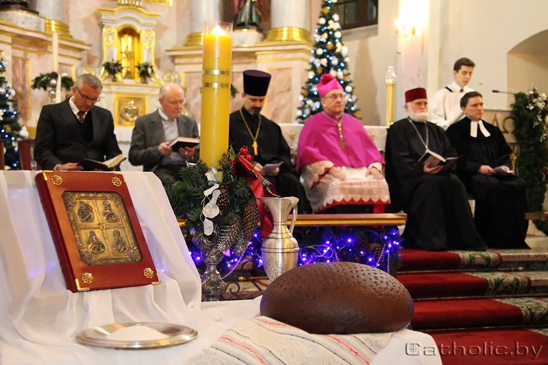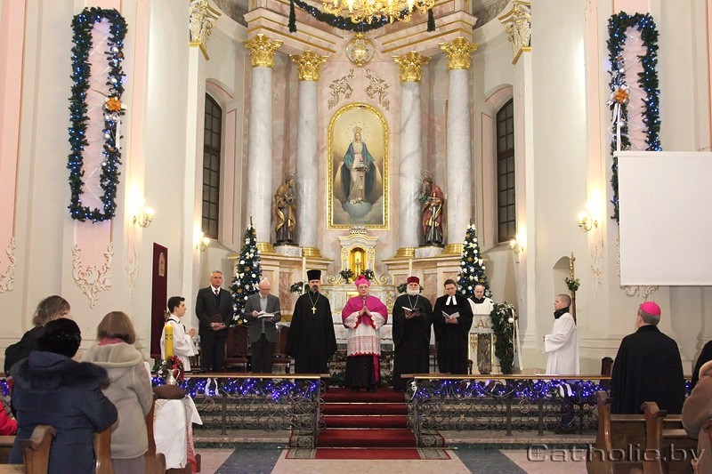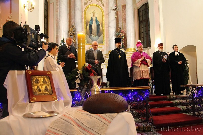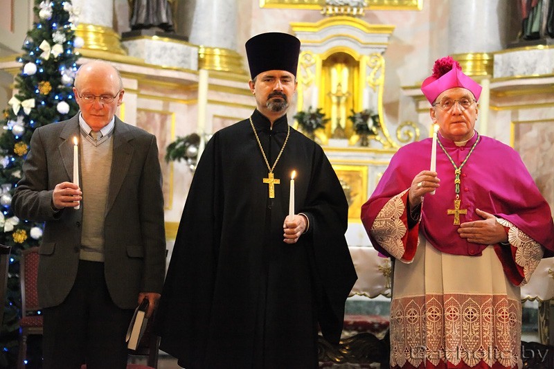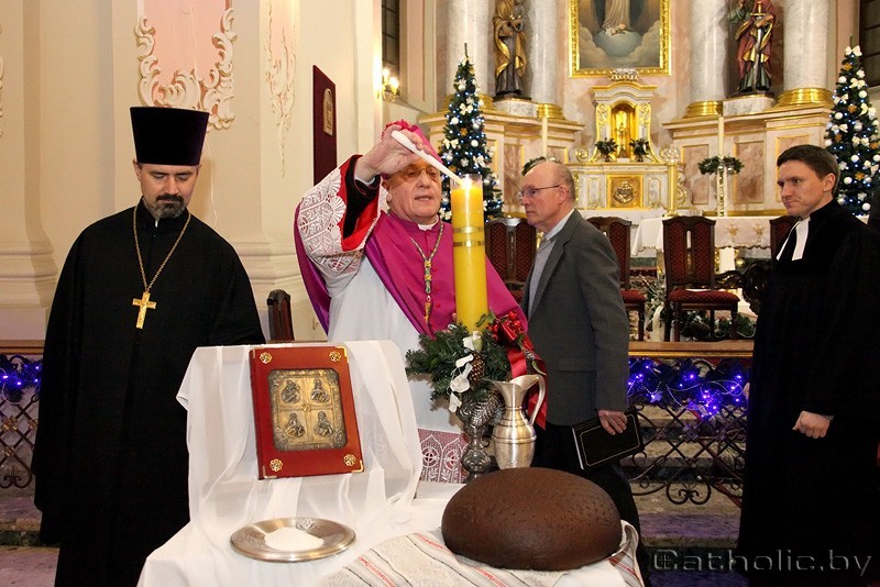 23 января в минском костеле Девы Марии прошло моление с участием католического архиепископа Тадеуша Кондрусевича, о. Александра Шимбалева, униатского “архимандрита” Сергея Гаека, пастора Владимира Татарникова , директора Библейского общества Беларуси Игоря Михайлова и других местных экуменистов.