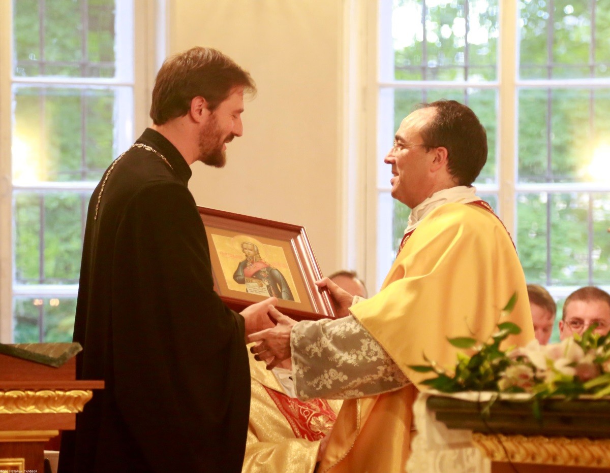 Представители православного духовенства от лица протоиерея Геннадия Зверева, благочинного Царскосельского округа, преподнесли католическому приходу икону св. Федора Ушакова. «Это торжество, не только для вашей общины, но и для всего города, потому что когда освящаются храмы, это не может не радовать».