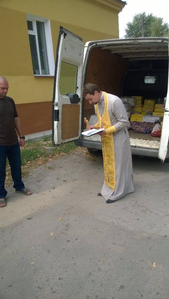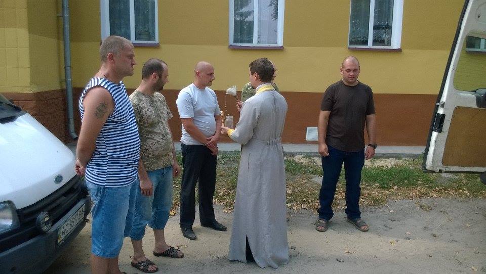 Сайт благочиния публикует фоторепортаж о том, как клирик Свято-Ильинского храма о. Владислав Михалюк передает роте финансовую помощь и благословляет “защитников Украины” на выполнение “святого долга”.