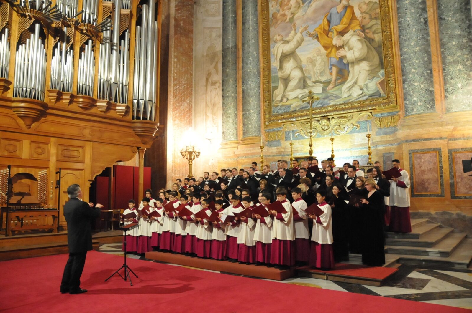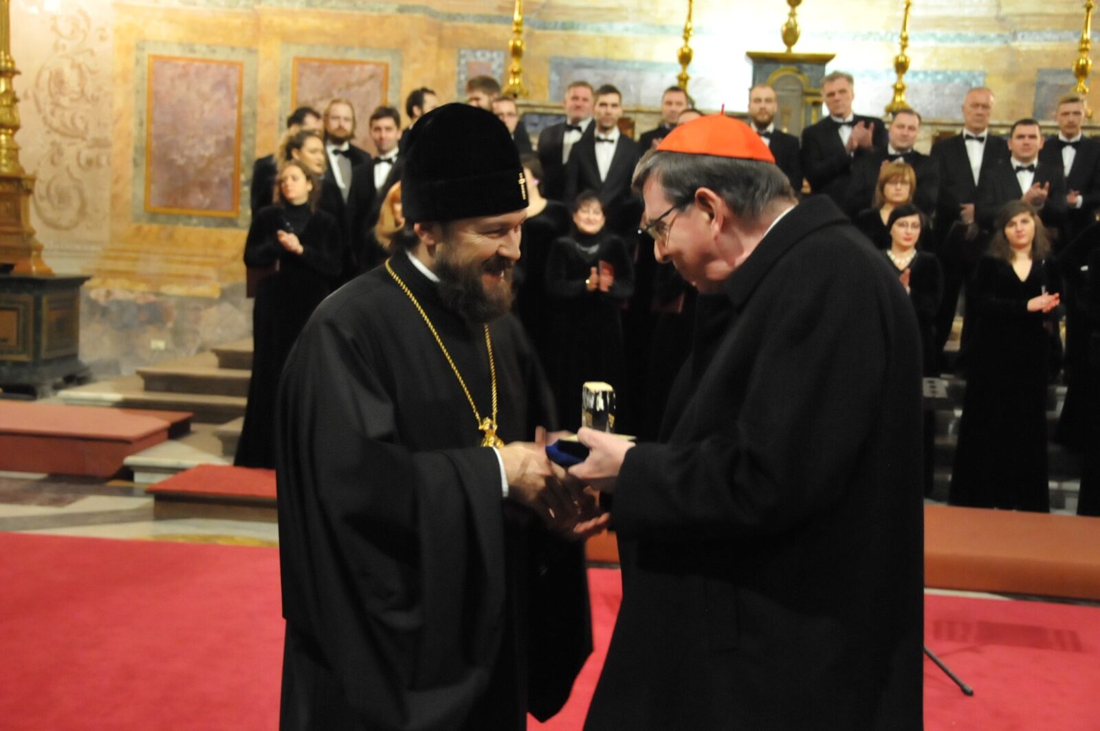 “Концерт прошел в рамках сотрудничества между Русской православной и Римско-католической церквами. Участники исполнили произведения итальянских и русских композиторов, таких как Джованни Палестрина, Сергей Рахманинов, председатель синодального Отдела внешних церковных связей митрополит Иларион (Алфеев), который присутствовал на мероприятии”, – сообщили “Интерфаксу” в Московском Синодальном хоре.